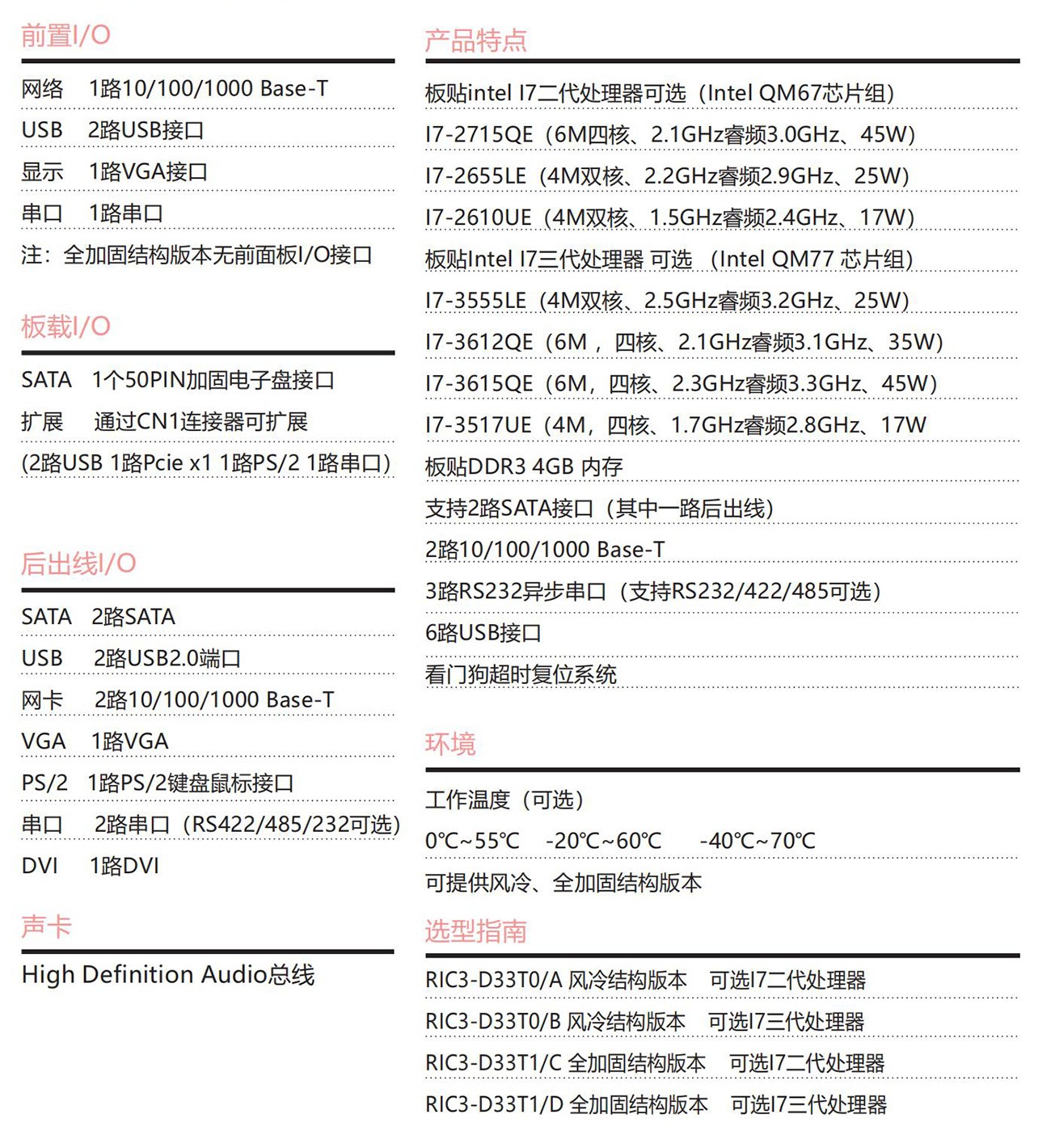 采 用Intel? I7二 代 , 三 代 處 理 器 設(shè) 計(jì) 方 案 ,CompactPCI 3U架 構(gòu) , 符 合 PICMG2.0 R3.0標(biāo)準(zhǔn)具備豐富的外圍接口;設(shè)計(jì)了高效的散熱系統(tǒng),可顯著提 高處理器的浮點(diǎn)運(yùn)算性能,以太網(wǎng)、PCIe TO PCI擴(kuò)展總線、滿足視頻采集與處 理等應(yīng)用對高速數(shù)據(jù)傳輸?shù)囊蟆閻毫迎h(huán)境使用而設(shè)計(jì),滿足無人機(jī)、裝 甲車、水面艦艇等應(yīng)用需求。