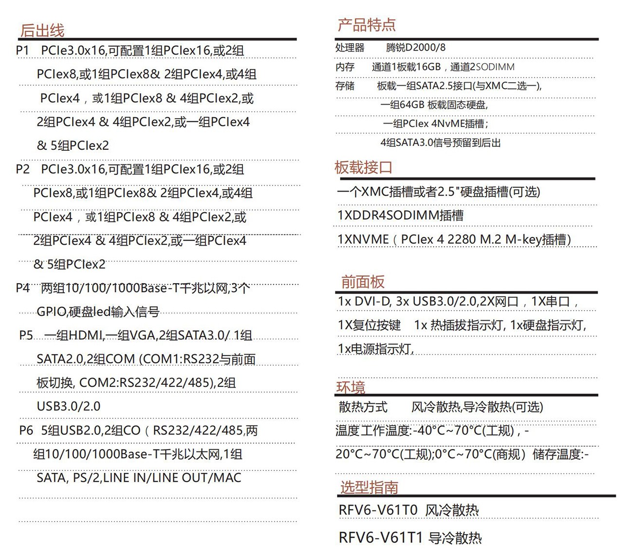 采用國產(chǎn)飛騰處理器FTD2000/8+ZX-200芯片 組按國產(chǎn)100%設(shè)計(jì),VPX 結(jié)構(gòu)兼容OpenVPX OpenVPX (VITA65),REDI (VITA48), 具 備 豐 富 的外圍接口;設(shè)計(jì)了高效的散熱系統(tǒng),可顯著提高處理器的浮點(diǎn)運(yùn)算性能,廣泛應(yīng)用于軍事,滿 足視頻采集與處理、雷達(dá)和聲吶等應(yīng)用對(duì)高速數(shù) 據(jù)傳輸?shù)囊?。滿足無人機(jī)、裝甲車、水面艦艇 等軍工領(lǐng)域